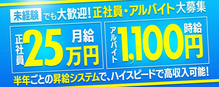 時給 :  1,100円 ~1,500円 ■昇給あり ■試用期間あり ■ガソリン代支給 ※業務に慣れて来たと判断できた場合、別途ガソリン代も支給いたします。 【正社員】月給23万円~半年に1度昇給目安 例) ①月給18~20万円(入社時、試用期間) ②月給23万円(試用期間後) ③月給25万円(半年後) ④月給28万円(約入社1年後) ⑤月給30万円(約入社1年半後) ※今後、店舗展開も予定しております。その際希望者に関しては勤務地手当として昇給額も上がります。そちらもご検討可能です |