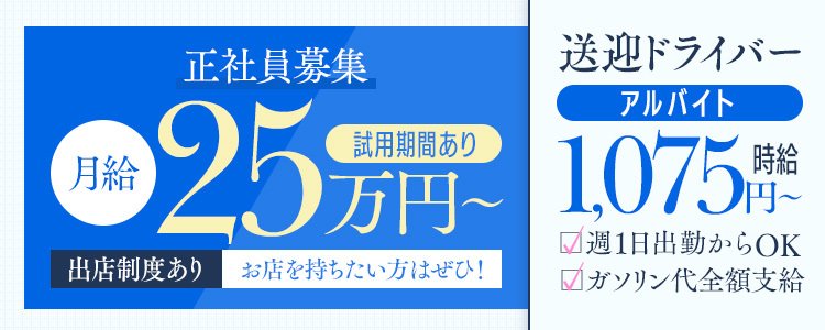 ・ドライバー 文字通り、女の子をお客様のご自宅またはご宿泊されているホテルなどに 安全に送り届けるお仕事です。 土地勘が必要となりますが、市内中心部がメインとなりますので、すぐに慣れると思います。 ・受付スタッフ お客様からの予約電話などを受け答えするお仕事です。 デリヘル業務の場合、問い合わせ内容が決まってきます。 指名は誰か、コースは何分か、場所は何処か、料金はいくらか。 ほとんどこの内容ぐらいしか、聞かれません。 事前に電話対応の練習をいたしますので、ご心配ありません。 未経験の方でも一週間あれば簡単に覚えることができますよ! |