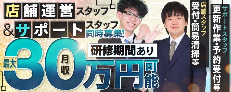 [業務内容]:接客/受付/電話応対/清掃/簡単なPC操作(苦手な方でも大丈夫です)/キャスト・スタッフマネジメント/売上計画策定/広告管理