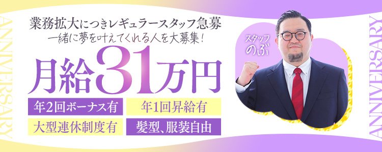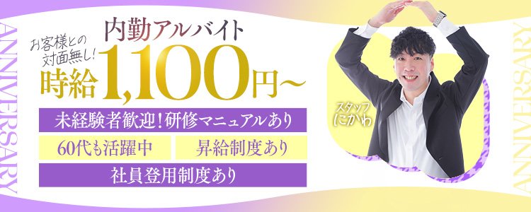 ■店舗運営スタッフ[正]・電話受付業務(お客様との対面接客はありません)お客様からの電話のお問合せ対応を行っていただきます。予約の受付や空き状況の確認・説明をお願いします。予約の確定後はキャストやドライバーに通達します。簡単なマニュアルや先輩スタッフに気軽に聞ける環境ですので、未経験でも安心して働けます。・PC更新業務ヘブンネットなど、ポータルサイト等の店舗情報更新作業を行っていただきます。キャストの出勤情報やイベント、求人ブログの作成となります。基本的にはボタンを押すだけや、ブログの更新時に簡単に文字が入力出来れば問題ありません。PCが苦手な人でも簡単にできます。・キャスト管理お店で働いていただいているキャストの方が稼げるようにインターネットを使ったPR(写メ日記)などの使い方などのアドバイスを行っていただきます。・その他の業務配車指示など・お客様との対面なし----------------------------------■受付スタッフ[ア]電話受付・ネット更新業務・配車業務など どれも簡単に覚えられる仕事ばかりです。また各業務のマニュアルも用意しておりますので気軽に取り組めます。・お客様との対面なし・簡単なPC作業・電話受付・送迎業務・配車業務・清掃業務 等