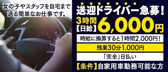 ≪送迎ドライバー急募≫ 3時間で日給6千円!! 残業は30分1000円 完全日払い!! (女の子やスタッフを自宅まで送る簡単なお仕事です。車をお持ちの方が条件となります。)