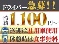 勤務中は完全社用車・通勤交通費支給・食事無料支給。