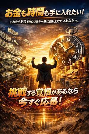 お金も時間も手に入れたい!これからグループを盛り上げたいあなたへ。挑戦する覚悟があるなら、今すぐ応募!