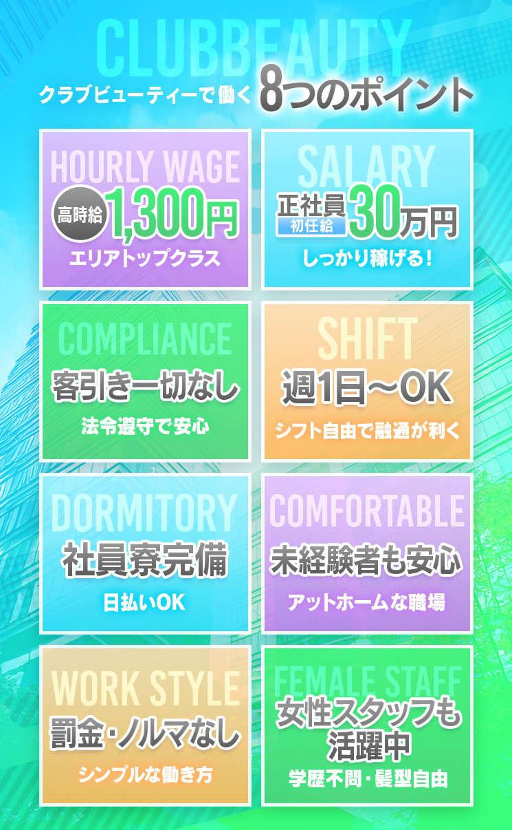【時給1,300円】店内清掃スタッフ急募!ヤル気と真面目さがあれば即高収入のチャンス!どこよりも驚くほど速い昇給、昇格を体験してみませんか?中洲エリア新規オープンにつきスタッフ大募集中です