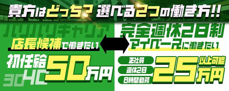 正社員・店長・幹部候補で30万~ アルバイト時給1,200~(完全日払い) |