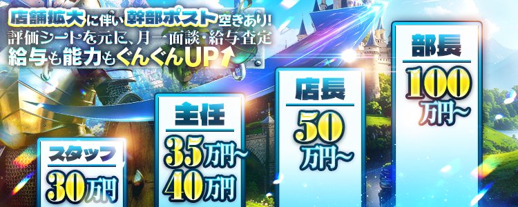 当店は安心の法人経営! 社保も完備しており、貴方の頑張りが正当に評価され、昇進...