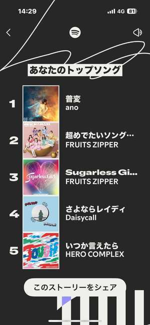 今回はSPOTIFYの年間の聞いた曲、アーティスト