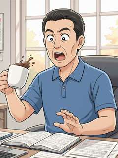 デスクで資料を読んでいたら、うっかりコーヒーをこぼしそうに。
