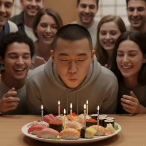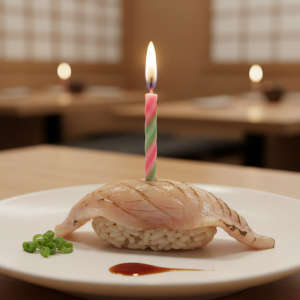 ケーキの代わりに「寿🍣司」にローソク立てて
