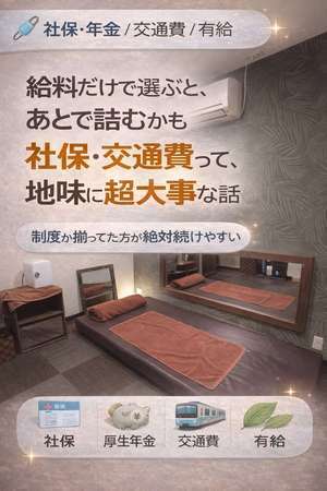 社保・年金・交通費・有給が揃ってると、生活が安定して続けやすいです。
