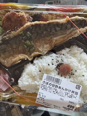 ちなみに分かりづらいけど写真のサバと唐揚げ弁当量多くて