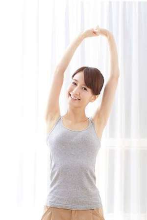 両腕を上に伸ばして