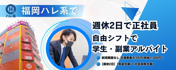 【アルバイト大募集】 試用期間「なし」! 交通費最大3万円まで支給! 時給1,300円 毎月20日〆末日払い 学生バイト急募!多くの学生が活躍中です^^ 我々先輩スタッフがしっかりサポートしていきますのでご安心下さい。 ビル店舗内業務のみ! 事故やトラブルのリスクに繋がる「車送迎業務」や 福岡県の条例違反である「キャッチ・呼び込み・スカウト」行為は一切行なっておりません。 当然ながら、全店舗とも関係法規に則り正式な届出を行なっております健全店でございます。 |