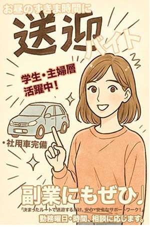 ☆☆☆☆☆☆☆☆☆☆☆☆☆☆☆☆☆☆☆☆☆☆☆☆☆☆ ☆☆☆☆☆☆☆☆☆☆☆☆☆☆☆☆☆☆☆☆☆☆☆☆☆☆ ☆安心の法人での運営をしております。 ☆週一からの出勤も歓迎です。 ☆車は社用車をご用意しております。(持込み車は必要ありません) ☆22名のスタッフの約半数は女性スタッフです。 ☆GPS付無線・大型ディスプレーによる配車手配など最新設備完備 ☆毎年盛り上がる高級料亭での忘年会有ります。(毎年11月実施) ☆主婦や・シングルマザーの女性の応援サポートいたします! ☆副業大歓迎!!空いた時間に兼用でお仕事可能です。 ☆送迎は当社の社用車(AT車)を用います ☆グループ内店舗には店長、事務員として女性の方も社員として活躍しています。 ☆経験のない方がほとんどです。親切丁寧に指導いたしますのでご安心ください。 ☆反社会勢力とは一切関係ございません。 ☆社会・労働保険、週休二日制採用による働きやすい職場環境を整えています。 ☆☆☆☆☆☆☆☆☆☆☆☆☆☆☆☆☆☆☆☆☆☆☆☆☆☆ ☆☆☆☆☆☆☆☆☆☆☆☆☆☆☆☆☆☆☆☆☆☆☆☆☆☆ |