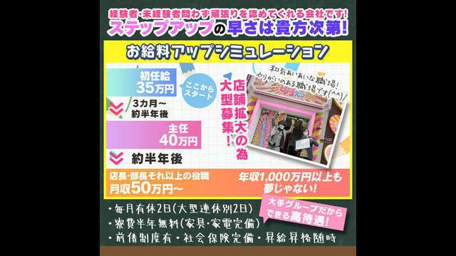 やる気のある方はすぐに店長クラスになれる可能性が高いです。