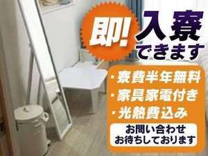 家具家電付きの寮完備。