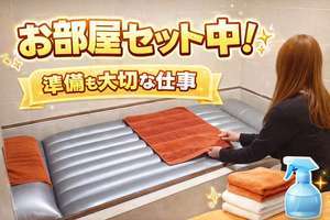 お部屋のセットも日常業務のひとつ です。