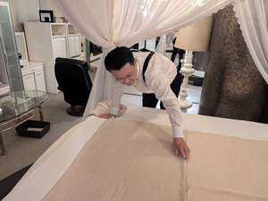 小さなシワまで丁寧に伸ばす姿勢は仕事への誇りを表し