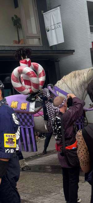 昼間から賑わっていて、出店の焼きそばやたこ焼きをつまみながらワイワイ大盛り上がり!