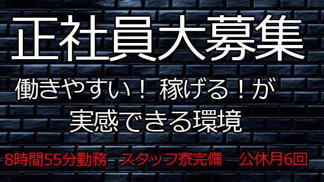 男子スタッフ新規採用強化中!初任給290,000円スタート!!