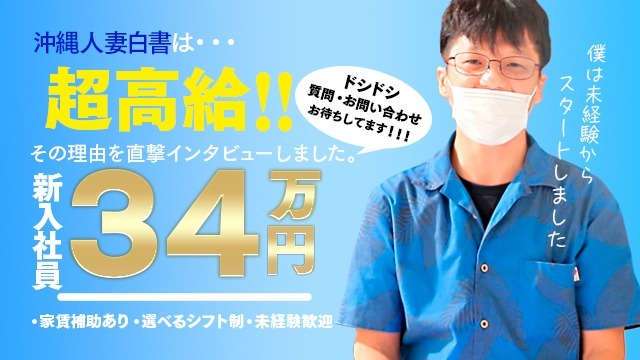 求人ムービー 新入社員34万円~ 【未経験】からスタートして、一か月責任者見習いとして日々、教えてもらいながら頑張っています。一緒に新規店を盛り上げてくれるスタッフを募集中です。 関連の求人 掛け持ち可/ 経験者歓迎/ 無料駐車場あり/ 車・バイク通勤可/ 中・高齢者歓迎/ ソープ/ 正社員/ 服装自由/ 契約社員/ 即日勤務可 SNS応募方法 沖縄人妻白書様のSNSID 【ジョブヘブンを見た】とご連絡下さい SNSサービスから上のIDにお問い合わせください。「ジョブヘブンを見ました」とお伝えすると対応がスムーズになります。 お電話・メールから応募する場合 電 話 098-988-0369 メール hakusyo0169@gmail.com 採用担当: 竹内/崎山/伊礼 受付時間: 随時募集中 閉じる