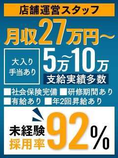 給 与  :店長候補 月給60万以上・幹部候補 月給40万以上