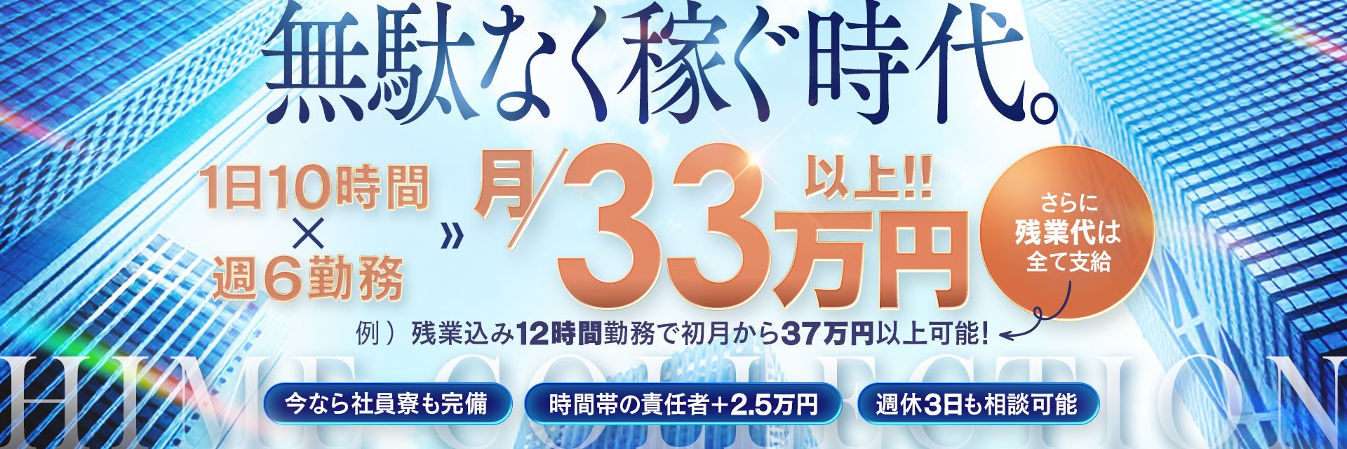 朝11時~翌3時の時間帯でお好きな時間帯で働けます(1日4時間~)