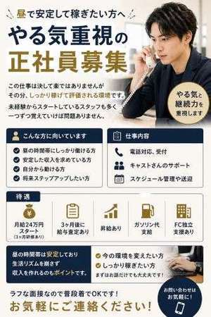 💼昼で安定して稼ぎたい方へ|やる気重視の正社員募集💼