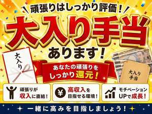 当店では基本給に加え、大入り手当が支給されるため、 日々の頑張りがしっかり収入に反映されます。