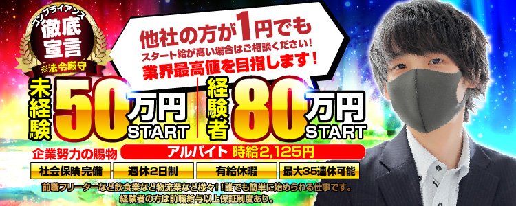 業界トップクラスの福利厚生 当店はコンプライアンスを徹底しています 業界トップクラスの高待遇 |