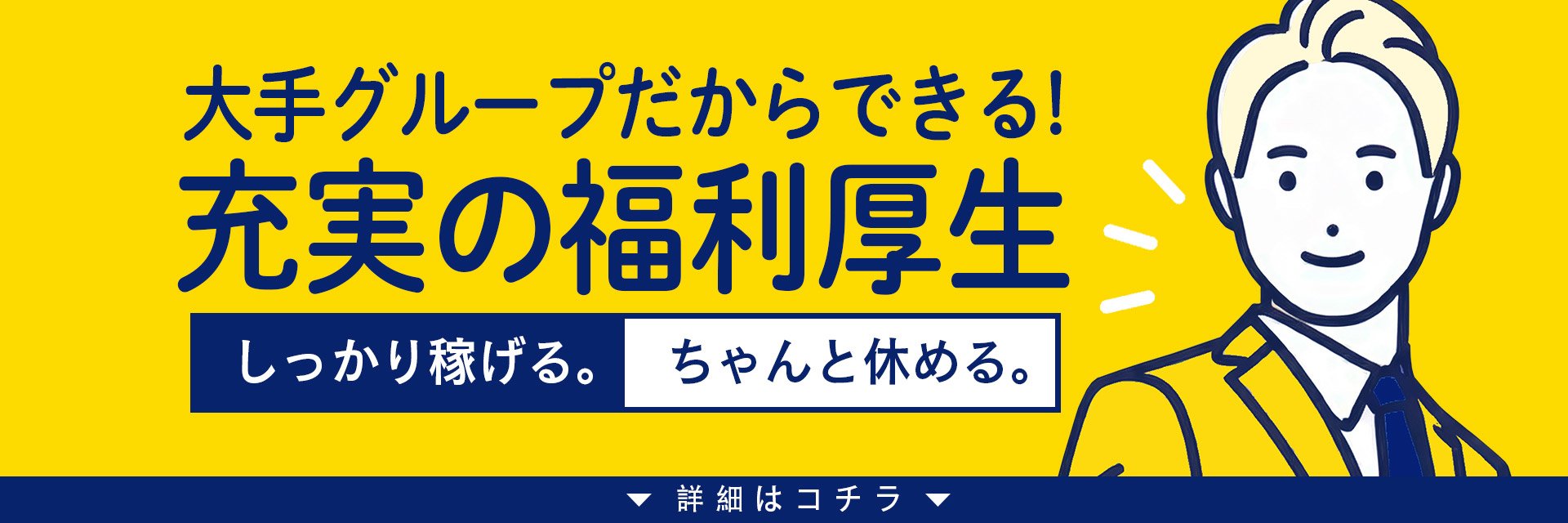 大手グループで安定した経営だからこそ、基本給30万円からスタート!さらに福利厚生も充実!住宅手当、子...