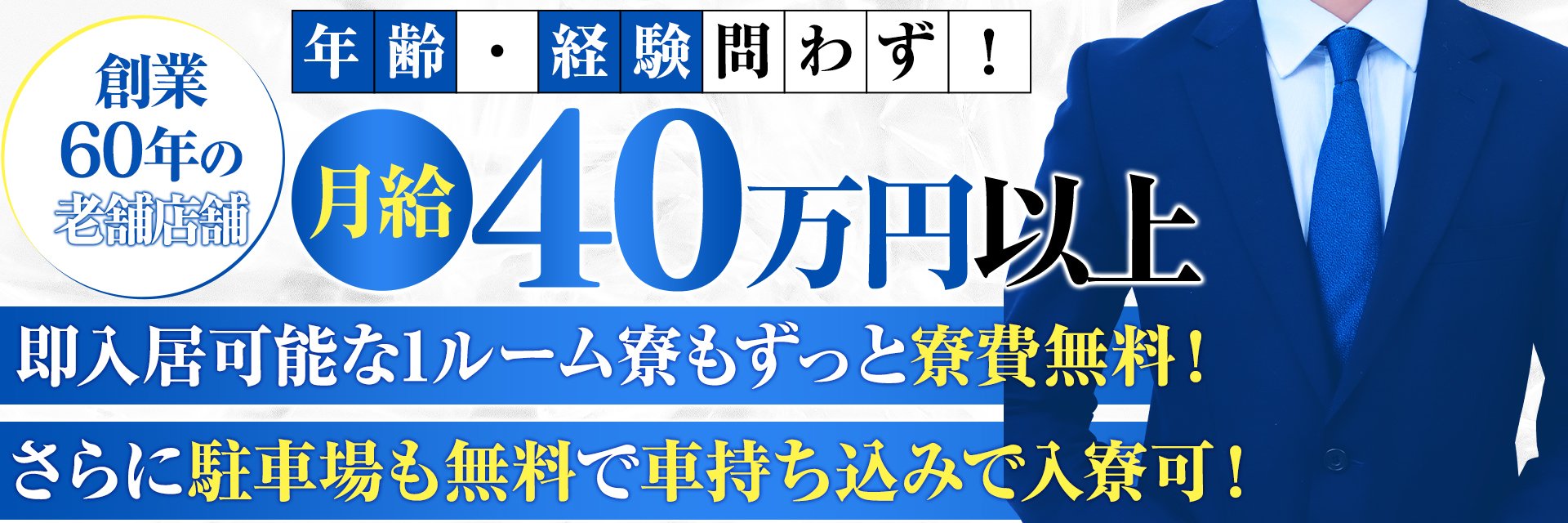 どなたでも月給40万円以上!車持込で即入居可の駐車場付の1R寮費無料!駐車場も無料!車通勤可能!交通費支給!社会保険完備!深夜営業、お客様の呼び込み、路上でのキャッチなしの健全営業!創業60年の老舗なので安心して働けます!年齢・経験一切問わずやる気重視の採用ですのでお気軽にご応募ください!