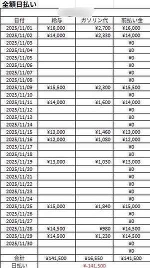11月は10日間ほどの出勤で
