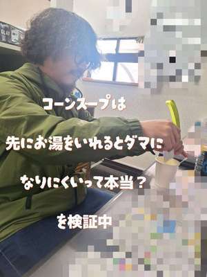 コーンスープは先にお湯を入れるとダマにならないっておつむと2人で検証してみたヽ(´エ`)ノ♪