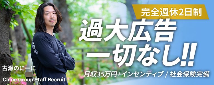 業界でも近年急成長しているお店と言えば五反田Chloe、当店でございます。 正直、流行っていないお店に入社しても上を目指せませんし、出店のチャンスも貰えません。 都内トップクラスの繁盛店であなたの力を発揮してみませんか? 当店は業界では珍しく福利厚生が充実しており、スタッフが安心して働ける環境が整っています。 また、私服OKでスタッフ同士の関係性もフラットでアットホームなことも特徴の一つです。 若くして一緒に成功を収めませんか? 40代、50代で成功している方は多くいます。 20代、30代で一緒に成功を掴みましょう! 是非あなたの力をお貸しください! 成功しているノウハウは難しくありません。 『正しい姿勢を持って仕事を楽しむ』 『お客様を大事にする』 『女の子を大事にする』 たくさんの仲間と共に誰でも上を目指せます。 年齢も見た目もキャリアも関係ありません! 未経験の方でも安心してお仕事が覚えられるように各種研修や勉強会をご用意しております。 また、分からないことがあれば先輩や上司が仕事内容を説明致しますのでご安心ください。 |