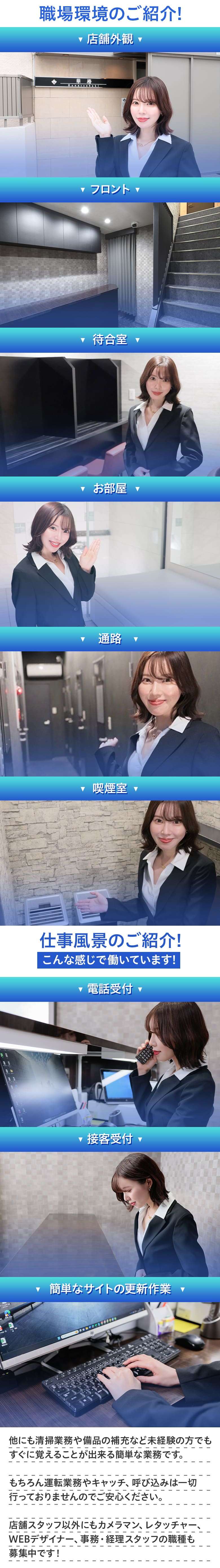 未経験でも月給50万円!ワンルーム寮費無料即入居可能!日払い1万円可能!新宿・池袋・巣鴨・目黒で選べる勤務地! 運転業務もございません!未経験でこの業界に入られる方は色々と不安もあるかと思いますが当グループは、公安委員会が定める風営法の届出済店舗ですので店舗型営業を行えております。 健全な運営を行っており呼び込みや時間外営業などもありませんのでご安心下さい。 店舗スタッフ、ウェブデザイナー、カメラマン、フォトレタッチャー、事務スタッフの職種を募集中です! 未経験者も安心して働けるのでぜひ一度お気軽に面接にお越しください。【スタッフ募集専用サイト】https://alicegrp.co.jp/