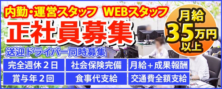 【待遇】 ①【内勤、運営スタッフ(正社員)】 ●正社員は月給35万~45万円以上 ※基本給+成果報酬+各種手当 ※研修期間有り、期間中は30万円~32万円スタート ②【内勤・Webスタッフ(正社員)】 ●正社員は月給33万~38万円以上 ※基本給+成果報酬+各種手当 ※研修期間有り、期間中は30万円~32万円スタート ①② ●賞与(夏、冬)年2回有り ●食事代(1日1000円まで)支給 ●社会保険完全完備 ●交通費全額支給 ●昇給随時(実績、能力により) ●他・各種手当有り ●完全週休二日制(月1回3連休有) ●週払い応相談! ③【送迎ドライバー(委託ドライバー)】 ・委託料目安 時間 1400円~1600円(経験者)+走行手当 完全日払い制 *1ヶ月40万円 以上可能 *試用期間 3日~10日間程度有り *詳細は面接の上決定いたします。 *未経験者は同乗研修があるので安心です。 出勤日時、シフトは柔軟に対応しますので是非ご相談下さい。 【応募受付】 メールでの質問・お問い合わせ24時間 (お問い合わせフォームにてどうぞ) https://www.s-yasuragi.jp/contact/ お電話でのお問い合わせ 10時~翌5時の間で対応いたします。 面接ご希望の方は、お電話で日時をご予約の上、来社して下さい。 |
