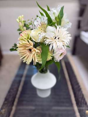 こんにちは、年末年始は恒例の食べ過ぎでムクミまくりスミレです♡今年初のお花は、新年らしく?白をメインとしたお花にしました❁