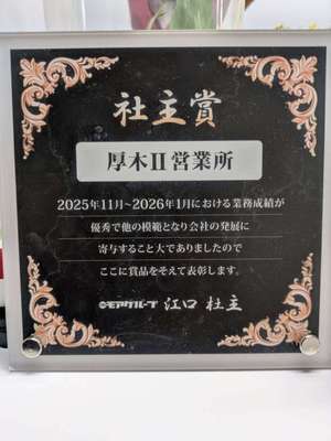 先日、社主賞をいただきました(^^)/
