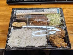 今回は唐揚げ+ハンバーグという最強コンボ。