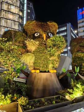 池袋西口といえば、この 巨大ふくろうの植木アート。