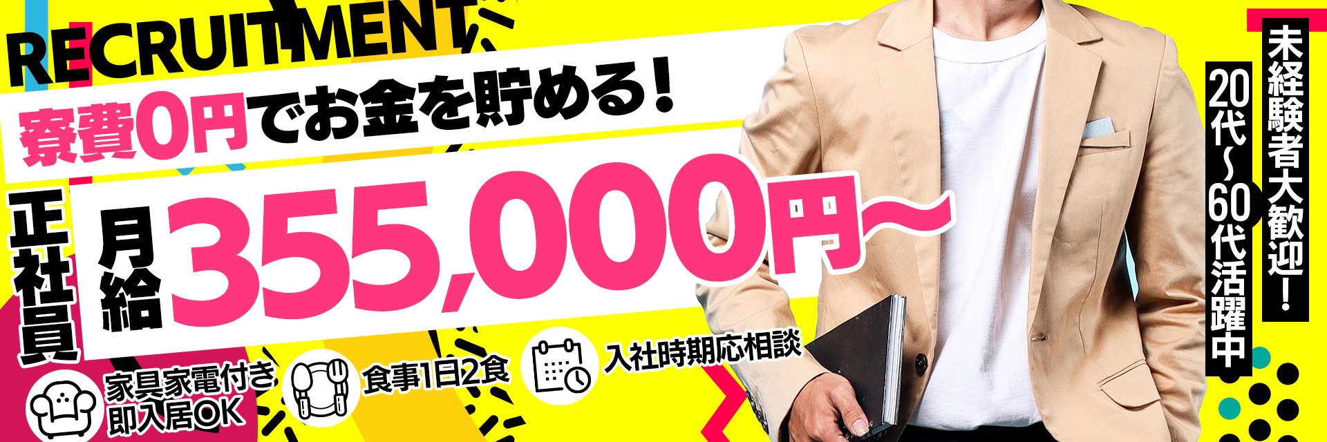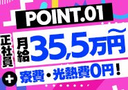 正社員は月給35.5万円~/未経験OK。寮費・光熱費無料!固定費を抑えて、貯金しやすい環境です。
