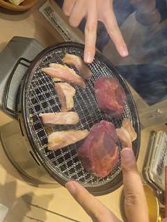 網の上では、分厚い牛タンと脂がきらめくお肉がジュウジュウ踊っていました。