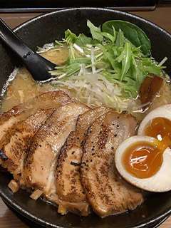 注文したのは、炙りチャーシューがずらりと並んだ贅沢な一杯。