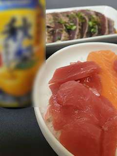 今日はマグロとサーモンを豪快にのせた海鮮丼