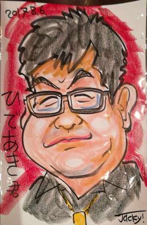 そのため以前、プロの似顔絵師に書いて頂いた似顔絵をのせたいと思います。