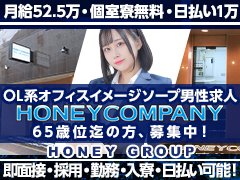 ハニー・グループは東京の吉原でソープランド、ハニーコレクション、ハニーカンパニー、メイドマスター、グッドワイフを運営するグループです。エリア屈指の人気店ですので男性スタッフも業界最高クラスの高待遇です。