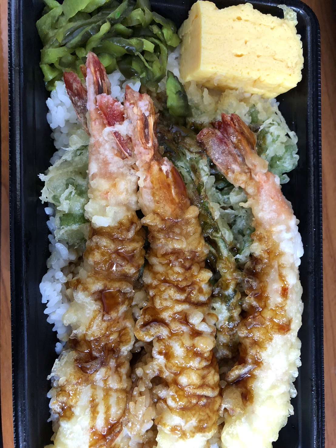 「タカマル鮮魚店」のエビ天丼ご飯大盛です。ぷりっぷりのエビに甘いタレが絡んでご飯もよく進みます。美味です。