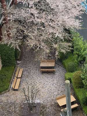 ベンチや道まで桜色に染まっていて、