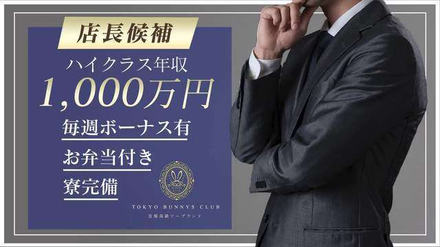 求人ムービー 【風俗業界で後悔しないためにはお店選びが9割!】 風俗業界で働き始めたときに、待遇やシステムについておかしいなと思ったことはありませんか?・残業や休日出勤がある・思ったより給料が安い・体育会系の縦社会がキツイ上記が一つでも当てはまれば退職しない限りお給料も休日も思うようには増えません。現状への不満、風俗業界で働く以上は同世代より稼ぎたいと思っている方は是非当店にお越しください。未経験の方も大歓迎です。 関連の求人 昇給あり/ 学歴不問/ 経験者歓迎/ 勤務開始日相談可/ 未経験可/ 長期歓迎/ ソープ/ 吉原/ 寮・社宅あり/ アルバイト SNS応募方法 TOKYO BUNNYS CLUB様のSNSID @340docnn TBCスタッフ求人LINE受付 SNSサービスから上のIDにお問い合わせください。「ジョブヘブンを見ました」とお伝えすると対応がスムーズになります。 お電話・メールから応募する場合 電 話 03-6240-6020 メール menrct@tokyo-bunnys-club.jp 採用担当: 採用担当 受付時間: 24時間 閉じる
